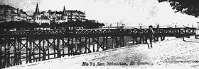 Le pont définitif a été inauguré le , lors de la fête de Saint-Sébastien. La veille, le , le vieux pont de bois a vu sa circulation suspendue. Il a été détruit par la suite. La cérémonie a débuté à 15h avec la banda la Unión, suivi des bandas de deux compagnies d'infanterie puis de celle de la mairie avec toute la corporation, presse, etc., parties de la rue Pescadería. Sur tout le parcours, les balcons étaient décorés. En cas de mauvais temps, il était prévu de faire le trajet dans un tramway spécial.