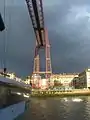 Pour franchir le Nervion entre Portugalete et Las Arenas, en aval de Bilbao, sans empêcher la remontée des bateaux jusqu'à Bilbao, Alberto de Palacio avait eu l'idée de mettre en œuvre une solution de pont roulant qui avait été mise au point et utilisée en 1873 par l'architecte Alexandre Leroyer (1827 - 1886) pour relier Saint-Malo à Saint-Servan. Cette solution fut refusée par crainte que les rails sur lesquels roulait le chariot ne soient arrachés par les ancres des bateaux.