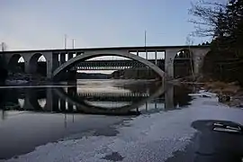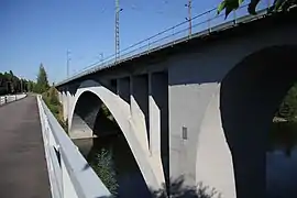 Le pont ferroviaire de Koria, derrière lequel on peut voir l'ancien pont ferroviaire datant de 1870. | |
