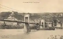 Le premier pont, suspendu et à tablier en bois, est construit en 1840. Il est utilisé jusqu'en 1914, puis démonté en vue de sa reconstruction.
