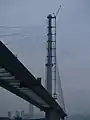 Les deux pylônes sont en béton jusqu'au niveau de 175 m et en matériau composite constitué d'une bague intérieure en béton avec une enveloppe en acier inoxydable de 20 à 25 mm d'épaisseur pour les 120 m supérieurs[2]. Le premier concept comportait une structure en acier jusqu’au niveau de 175 m, mais Arup a constaté que cette configuration serait trop sensible et pourrait conduire à des vibrations incompatibles avec les haubans. Le remplacement de la section en acier par une section composite plus lourde résolut ce problème. Pour des raisons de durabilité et d'esthétique, d'autres études conclurent que l’enveloppe de la tour devait être fabriquée à partir d'un acier inoxydable duplex avec une surface finie par grenaillage. Le tablier est en acier dans la travée principale et en béton dans les travées latérales.