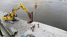 D'importants travaux de sécurité par soutènement[3] (par palées) ont été réalisés à l'été 2020 pour renforcer temporairement le tablier. Douze appuis supplémentaires ont été installés dans le lit du fleuve pour soutenir le tablier de l'édifice. Le système de suspension a ensuite été détendu afin que le tablier repose sur ces appuis provisoires.