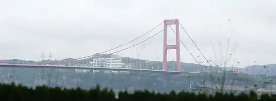 C'est un pont suspendu d'une portée de 960 m qui supporte l'autoroute Hurong reliant Shanghai à Chongqing, sa construction débuta le et il fut mis en service le [2].