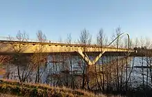 - un arc médian, situé entre les deux sens de circulation, ainsi que Santiago Calatrava l'avait déjà proposé et réalisé avec le pont de Lusitanie à Merida en Espagne;