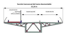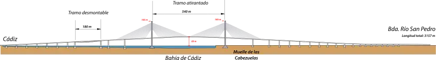Le pont comporte trois voies routières du CA-35 dans chaque sens de circulation, ainsi qu'une plate-forme réservée pour la seconde ligne du tram-train de la Baie de Cadix.