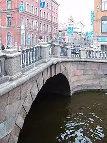 Pendant l'été 1880, les membres de l'organisation Narodnaïa Volia avaient posé de la dynamite sous le pont avec l'intention de le faire exploser lorsque l'attelage transportant l'empereur Alexandre II traverserait le pont. Toutefois, cette opération n'a jamais été réalisée, car les conspirateurs n'étaient pas sûrs que la quantité de dynamite suffirait à faire tomber le pont. La dynamite cachée a été extraite à partir du bas du canal au printemps 1881, après l'assassinat d'Alexandre, au cours du procès des Quatorze.