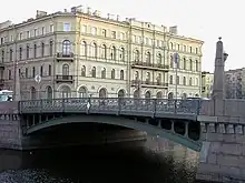Une passerelle de bois est construite en 1738 pour les ouvriers construisant les quais de granite de la Moïka qui pouvait s'élever au passage des bateaux à mât. On l'appelle le pont de couleur à cause de la peinture variée qui la décorait. On construit un nouveau pont de bois reposant sur des arcs de pierre. Il prend le nom de « pont des Baisers » à cause d'une auberge, située à côté sur la rive gauche de la Moïka à l'angle de la rue Glinka, qui s'appelait l'auberge du Baiser[1]. Il est reconstruit en 1808-1816 par William Hastie, architecte d'origine écossaise qui passa sa carrière dans l'Empire russe, et décoré de quatre obélisques de granite avec des lampadaires, la structure métallique provient des usines de l'Oural de Nicolas Demidoff. La rambarde métallique est restée inchangée jusqu'à aujourd'hui. Le pont est restauré en 1824 après les inondations catastrophiques de cette année-là.