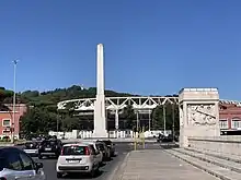 Le « Foro Mussolini » (aujourd'hui Foro Italico), conçu par Enrico Del Debbio et inclus dans le plan directeur général de 1931[4], prévoyait dès le projet de 1927 un pont sur le Tibre qui constituerait l'entrée spectaculaire du quartier Flaminio, aligné avec l'obélisque de marbre dédié à Mussolini, avec le piazzale dell'Impero derrière lui (aujourd'hui viale del Foro Italico) et avec la fontaine de la Sphère placée devant le « stade des Cyprès » (aujourd'hui Stade olympique)[2],[4].