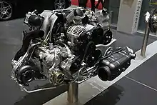 La ligne d'admission se dote de deux conduits, la distribution est allégée et les collecteurs d'échappement sont revus pour diminuer les contre-pressions. Enfin, la pompe à eau est redimensionnée pour en augmenter le volume et la lubrification est assurée par une pompe pilotée[19]. Le moteur de la Porsche Carrera développe ainsi 345 ch (385 ch pour la Carrera S) pour une consommation mixte d'à peine plus de 10 L/100 km et des émissions de CO2 de 242 g/km[12]. Le roulement IMS, mis en cause dans certaines casses moteur de 996 et 997, disparaît totalement lors de cette refonte technique, ce qui accroît très sensiblement la fiabilité des voitures.
