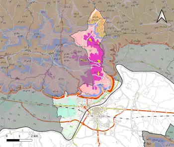 La superficie cadastrale de la commune publiée par l'Insee, qui sert de référence dans toutes les statistiques, est de 18,32 km2[6],[12],[Note 2]. La superficie géographique, issue de la BD Topo, composante du Référentiel à grande échelle produit par l'IGN, est quant à elle de 18,79 km2[3].