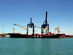 Enfin, c'est le trafic de marchandises qui fournit au port sa plus grande part d'activité. En 2007, 7,25 millions de tonnes de marchandises ont transité par le port de la Baie de Cadix. Celui-ci a connu une progression annuelle du tonnage de l'ordre de 23 %, ce qui en fait le complexe portuaire le plus en progression d'Espagne pour l'année en question[16]. Les marchandises traitées sont de nature très diverse : pétrole, produits chimiques, métaux, produits agroalimentaires, voitures, matériaux de construction…[15].