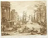 Certains détails de la composition rappellent Le Port d'Ostie avec l'embarquement de sainte Paule (1639, musée du Prado, Madrid)[3].