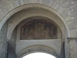 Au-dessus de l'arc central, a été attribué après restauration, une grande fresque de Franciabigio, représentant la Vierge à l'Enfant et quatre saints.