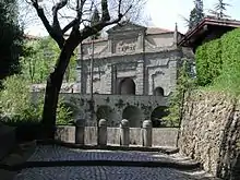 L'entrée dans la ville et le passage vers la porte nécessitaient auparavant un transit sur un viaduc en bois. En 1780, le pont-levis et le viaduc en bois ont été remplacés par un pont en brique soutenu par des arches. Ce n'est qu'à partir de 1838, que la via Vittorio Emanuele, autrefois appelée Strada Ferdinandea, fut construite pour la visite de l'empereur Ferdinand Ier d'Autriche à Bergame. Au XXIe siècle, pour permettre la circulation routière, le pont en arc a été remplacé par un remblai pour soutenir la chaussée[4].