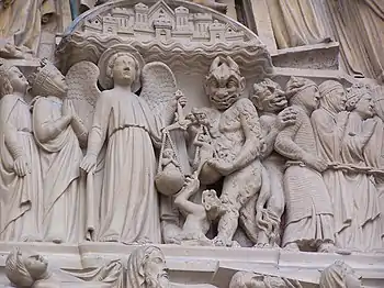 Le portail du Jugement dernier est le portail central de la façade ouest de la cathédrale Notre-Dame de Paris. Il représente le Jugement dernier tel qu'il est écrit dans l'Évangile selon saint Matthieu. Construit entre 1210 et 1240, c'est le plus récent des trois portails de l'élévation principale[1]. Il a été modifié en 1771-1772, sur un projet de Jacques-Germain Soufflot, avec la création d'une seule arche, et a retrouvé ses caractéristiques d'origine lors de la restauration du XIXe siècle dirigée par Eugène Viollet-le-Duc et Jean-Baptiste Antoine Lassus[2].