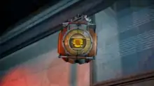 Le joueur peut entendre au même moment l'Annonceur, un système de secours qui maintient les fonctions primaires des bâtiments et les chambres de biostase, prononcer la phrase : « Bonjour. Votre cryostase a duré neuf neuf neuf neuf neuf... ». Il s'agit de la phrase prononcée au début de Portal 2 durant l'examen régulier des capacités motrices des participants placés temporairement en biostase[19].