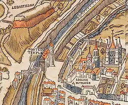 Charles V, en 1356, ordonna l'édification d'une nouvelle muraille, qui remplaça sur la rive droite l'enceinte de Philippe Auguste. Seules six portes furent créées pour permettre le contrôle de l'accès à la capitale.