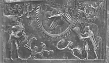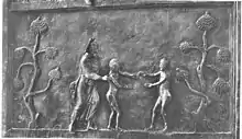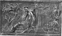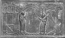 ![]() | ![]() | Adam et Ève correspondent au Christ et aux Femmes au tombeau, interprétées au sens figuré comme les "Épouses du Christ"[3]. |