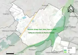• « la Garonne de Montréjeau jusqu'à Lamagistère » (5 075 ha), couvrant 92 communes dont 63 dans la Haute-Garonne, trois dans le Lot-et-Garonne et 26 dans le Tarn-et-Garonne[29],