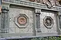 Conçu par l'architecte Charles-Auguste Risler (1864-1937) et le sculpteur Jules Coutan (1848-1939)[1], et réalisé à la la Manufacture de Sèvres[1], il orne le Pavillon des Manufactures françaises lors de l'Exposition universelle de 1900[1]. Sauvegardé, il est déplacé sur une façade jouxtant le square.