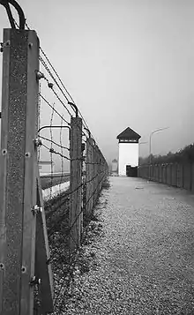 Le périmètre du terrain du camp de détention était délimité par des clôtures et des murs électrifiés. Le long du mur se trouvait un fossé et à côté se trouvait une « zone neutre », également surnommée la « bande de la mort » par les prisonniers. Cet espace leur est interdit :un prisonnier qui s'approche même de cette zone risque d'être abattu par un gardien invoquant le Postenpflicht. Les gardes qui abattent un prisonnier reçoivent une prime et trois jours de congé. Certains gardes, pour leur amusement et leur profit, jettent parfois une casquette de prisonnier dans la «zone de la mort» et ordonnent au prisonnier de la chercher, puis l'abattent[3],[4]. Ils le font parfois par paire, se relayant pour obtenir tous les deux la prime[2]. Des témoins et d'anciens prisonniers rapportent également des cas où des prisonniers sont entrés intentionnellement dans la zone interdite, pour s'échapper du camp par le suicide[réf. souhaitée].