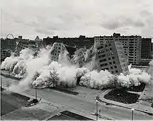 Le postmodernisme introduit une distance critique par rapport au discours moderniste devenu hégémonique. C'est un courant majeur de la création architecturale, et plus généralement artistique, de la fin du XXe siècle. Considéré aux États-Unis comme un terme purement stylistique, le postmodernisme est la réintroduction de l'éclectisme en architecture, mais en englobant aussi le Modernisme et le Style international, reconsidérés comme de simples moments de l'histoire de l'architecture avec lesquels on a pris ses distances. Mais en Europe, ce discours critique porte aussi sur la décontextualisation sociale, politique[9] et géographique de l'urbanisme moderne admettant des contre-propositions comme celles de Christopher Alexander ou de François Spoerry[10].