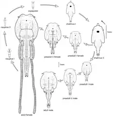 Les nauplies grandissent en muant 3 fois[11], les exuviations se produisant pendant une période de jeûne.