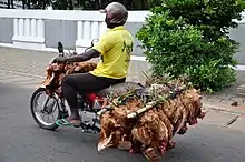 Une autre explication, souvent avancée, fait référence aux vendeurs de poulets qui se déplacent à vélo, du village vers le marché[4],[5], transportant parfois jusqu'à une vingtaine de volailles.