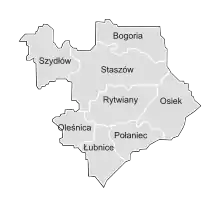 - 5 communes rurales : Bogoria, Łubnice, Oleśnica, Rytwiany, Szydłów.