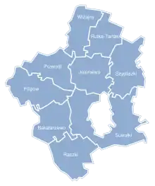 | * le chef-lieu ne fait pas partie de la gmina | ||||