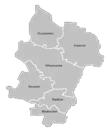 - 5 communes rurales : Kluczewsko, Krasocin, Moskorzew, Radków et Secemin.