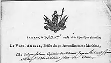 L'arrêté[9] du 1er thermidor an VIII () nomme les 6 premiers préfets maritimes :