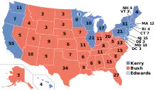 Du côté des démocrates, le président sortant Bill Clinton, ayant déjà accompli deux mandats, ne pouvait se représenter et ce fut le vice-président Al Gore qui décrocha la nomination. Tout au long de la campagne, Bush n'eut de cesse de mettre en avant sa personnalité au détriment de celle de Clinton, qui avait été sérieusement entachée par l'affaire Monica Lewinsky. Alors que le candidat républicain caracolait en tête de divers sondages effectués après le dernier débat face à Gore en octobre, la révélation par les médias de son arrestation pour conduite en état d'ivresse en 1976 fragilisa sa position. Le jour du scrutin, l'incertitude était à son comble car l'écart entre Bush et Gore était infime. La situation était particulièrement tendue en Floride où Bush ne devançait son adversaire que de quelques centaines de voix. Face à l'importance de l'enjeu — dans la mesure où le résultat de l'élection en Floride déterminerait le vainqueur à l'échelle du pays —, la Cour suprême locale ordonna un recomptage partiel. Cette décision fut toutefois annulée par la Cour suprême des États-Unis dans son arrêt Bush v. Gore, au motif qu'elle contrevenait à l'égalité devant la loi, confirmant de fait la victoire de Bush en Floride et au niveau national. Ce dernier rassembla en définitive 271 votes de grands électeurs contre 266 pour Gore, qui obtint pour sa part la majorité des suffrages populaires sur l'ensemble des États[3]. Bush fut ainsi le quatrième candidat à une élection présidentielle américaine, et le premier depuis 1888, à être proclamé vainqueur tout en étant minoritaire en nombre de voix[4]. Lors des élections législatives qui se déroulèrent à la même période, les républicains conservèrent leur majorité à la Chambre des représentants mais perdirent cinq sièges au Sénat, qui fut dorénavant composé de cinquante républicains et de cinquante démocrates[3].