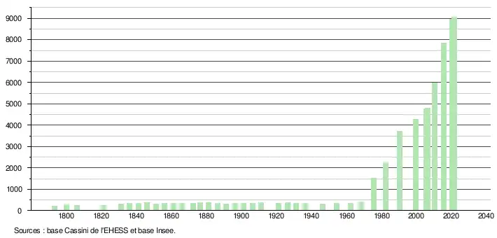 - Population municipale légale en vigueur au 1er janvier 2024, millésimée 2021, définie dans les limites territoriales en vigueur au 1er janvier 2023, date de référence statistique : 1er janvier 2021.