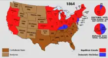 Lincoln mit par ailleurs en œuvre sous son administration un ambitieux programme de politique intérieure, qui comprenait notamment les premiers textes de la série des Homestead Acts, le Morill Land-Grant Act of 1862 et le Pacific Railroad Act of 1862. Candidat à sa réélection en 1864 sous la bannière du Parti de l'Union nationale, soutenu par les républicains et une partie des démocrates, il l'emporta largement sur son adversaire du Parti démocrate, le général George McClellan. Quelques mois après l'élection, Grant reçut la reddition de la principale armée confédérée dirigée par le général Robert Lee, ce qui précipita la fin des hostilités. Lincoln fut assassiné en , cinq jours après la fin de la guerre, laissant à ses successeurs le soin de mener à bien la reconstruction du pays.