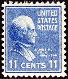 Le volume des correspondances augmenta fortement sous la présidence de Polk, mais le coût de cet accroissement pour le gouvernement fédéral fut compensé par l'introduction du timbre postal. Auparavant, les destinataires ne payaient qu'après réception du courrier, ce qui faisait que le service des postes ne percevait rien lorsque le destinataire ne pouvait être trouvé. Avec la mise en circulation du timbre postal prépayé, l'administration était sûre d'être rétribuée en toute circonstance. Le ministre des Postes Cave Johnson fit également recruter 13 500 nouveaux fonctionnaires issus des rangs du Parti démocrate, conformément au principe du « système des dépouilles »[139].