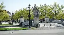 De nos jours, les statues sont au nombre de 78[7] (40 le long de la rive extérieure du canal et 38 le long de la rive intérieure) mais elles étaient à l'origine 88. La disposition actuelle est principalement due à la destruction par l'Armée napoléonienne des statues représentant les Doges de Venise. Cet acte conduit à un repositionnement de toutes les statues et surtout à la mise en place d'obélisques sur les bords des ponts est et ouest, originellement prévus pour accueillir des statues. Le pont situé au nord est quant à lui privé de statues.