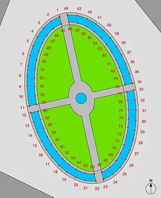 ![]() Plan de l'isola memmia avec la numérotation des statues