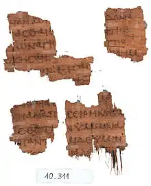 Le papyrus 118 (Gregory-Aland), recto, contenant Rm 15:26-27 et Rm 15:32-33, IIIe siècle, université de Cologne.