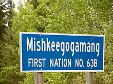 - (en) Cet article est partiellement ou en totalité issu de l’article de Wikipédia en anglais intitulé « Mishkeegogamang First Nation » (voir la liste des auteurs).