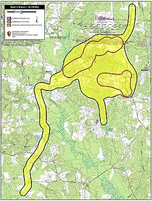 Carte du champ de bataille de Ream's Station et des zones d'étude par le programme de protection des champs de bataille américains.