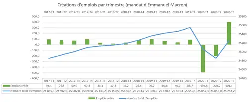 Emmanuel Macron avait affirmé une volonté de réduire le périmètre des services publics en se fixant l'objectif de supprimer 120 000 postes de fonctionnaires en cinq ans[75]. En , le chef de l’État souhaite qu’il n’y ait plus de fermetures d’écoles ou d’hôpitaux d’ici à la fin du quinquennat et assurer pour l’ensemble des citoyens un accès aux services publics « en moins de trente minutes », notamment grâce à l'implantation d'une structure dénommée « France services » à l'échelle du canton[76]. En , Gérald Darmanin acte une revue à la baisse des suppressions de postes au sein de la fonction publique d'État, de 50 000 à 15 000 postes, faisant ainsi passer l'objectif global de 120 000 à 85 000 suppressions. Cette décision fait suite à l'intégration du ministère de l'Éducation dans les ministères « sanctuarisés » à l'issue du grand débat national[77].