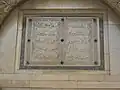Trois textes de fondation sont inscrits sur des dalles carrées de marbre, de 1,05 mètre de côté, scellées dans le tympan de l'arc de décharge. Les inscriptions y sont gravées en creux et incrustées de plomb. Pour chaque plaque, la totalité du texte est inscrite dans un encadrement et chaque ligne est scindée en deux[1].