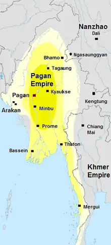 Au XIIIe siècle, l'Empire Pagan et l'Empire khmer sont les deux principales puissances de l'Asie du Sud-Est continentale[3]. Pendant une grande partie de son histoire, le voisin du Pagan au nord-est n'est pas la Chine mais le royaume de Dali et son prédécesseur, celui de Nanzhao, tous deux ayant la ville de Dali comme capitale. Les royaumes basés autour de Dali étaient des puissances à part entière, s'alliant tantôt avec l'Empire du Tibet à l'ouest, tantôt avec les dynasties chinoises Tang et Song à l'ouest. Il faut préciser que les armées de cavaliers du Nanzhao se sont aventurées profondément dans ce qui est aujourd'hui la Birmanie et ont peut-être été à l'origine de la fondation de la cité médiévale de Pagan et de la dynastie Pagan elle-même[4].