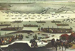 Le dur hiver 1657-1658 avait bloqué la flotte dano-norvégienne dans ses ports et le Grand et le Petit Belt séparant les îles danoises du continent étaient complètement gelés. Après être entrée dans le Jutland par le sud, une armée suédoise de 7 000 vétérans entreprit la traversée des détroits. Le , le Petit Belt est franchi et l'île de Funen (Fyn) est capturée en quelques jours puis c'est le tour de Langeland, Lolland et Falster. Le , l'armée suédoise poursuit à travers le Grand Belt et entre en Seeland où se trouve la capitale Copenhague. Même si seulement 5 000 hommes ont franchi les détroits, l'attaque suédoise est complètement inattendue. Frédéric III est obligé de signer le traité de Roskilde particulièrement désavantageux le [27]. La victoire suédoise est totale et lui permet de s'emparer de la Scanie, de l'île de Bornholm et des districts de Halland, Blekinge, Bohuslän et Trondheim.
