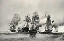 Le combat eut lieu près de l'embouchure de la Rivière Noire. Après plusieurs heures de combat, les vaisseaux britanniques durent quitter les lieux assez piteusement bien que les deux frégates françaises eurent subi des pertes significatives (Renaud est gravement blessé) et de nombreux dégâts dans leur mâture. Le blocus fut levé pour quelques semaines.