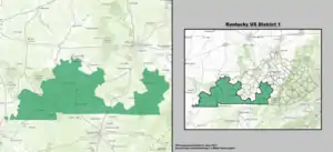 Comtés du Kentucky dans le 1er district : Adair, Allen, Ballard, Boyle, Caldwell, Calloway, Carlisle, Casey, Christian, Clinton, Crittenden, Cumberland, Franklin, Fulton, Graves, Henderson, Hickman, Hopkins, Livingston, Lyon, Marshall, Marion, McCracken, Metcalfe, Monroe, Ohio, Russell, Simpson, Taylor, Todd, Trigg, Union, Washington et Webster. Des parties des comtés d'Anderson et de Logan se trouvent dans le district.
