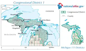 Le 1er district congressionnel du Michigan est un district qui contient entièrement les quinze comtés de la Péninsule supérieure du Michigan et les vingt comtés du nord du Michigan dans la Péninsule inférieure. Le district est actuellement représenté par le Républicain Jack Bergman.