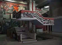 En outre, la fresque tire parti d'un escalier en colimaçon aux angles carrés qui monte au premier étage de la Casa del Arte, où se trouve l'une des salles d'exposition permanente. Cela donne à la fresque une surface d'environ 250 m2[9].