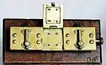 Après la taille des deux plans qui sont installés bout à bout (sans chevauchement) sur le plateau garni de plusieurs ergots, le monteur tire une portion de film adhésif qu’il rabat sur la jointure des plans. Il referme alors sur le dispositif une solide poignée à trois actions : elle applique fermement l’adhésif sur les pellicules, elle troue cet adhésif au droit des perforations du film, la double cisaille à levier qu'elle possède découpe le ruban adhésif à la largeur du film. L’opération est généralement répétée sur l’autre face du film, notamment si celui-ci doit être projeté, afin de consolider la « collure ». Les bandes son magnétiques perforées aux formats 35 mm ou 16 mm sont munies d’un adhésif du côté support seulement et leur jointure est en biais pour éviter un « cloc ! » sonore à la lecture. Sur la photo, on distingue à droite le couteau orthogonal pour couper les bandes image et le couteau en biais pour les bandes son magnétiques.